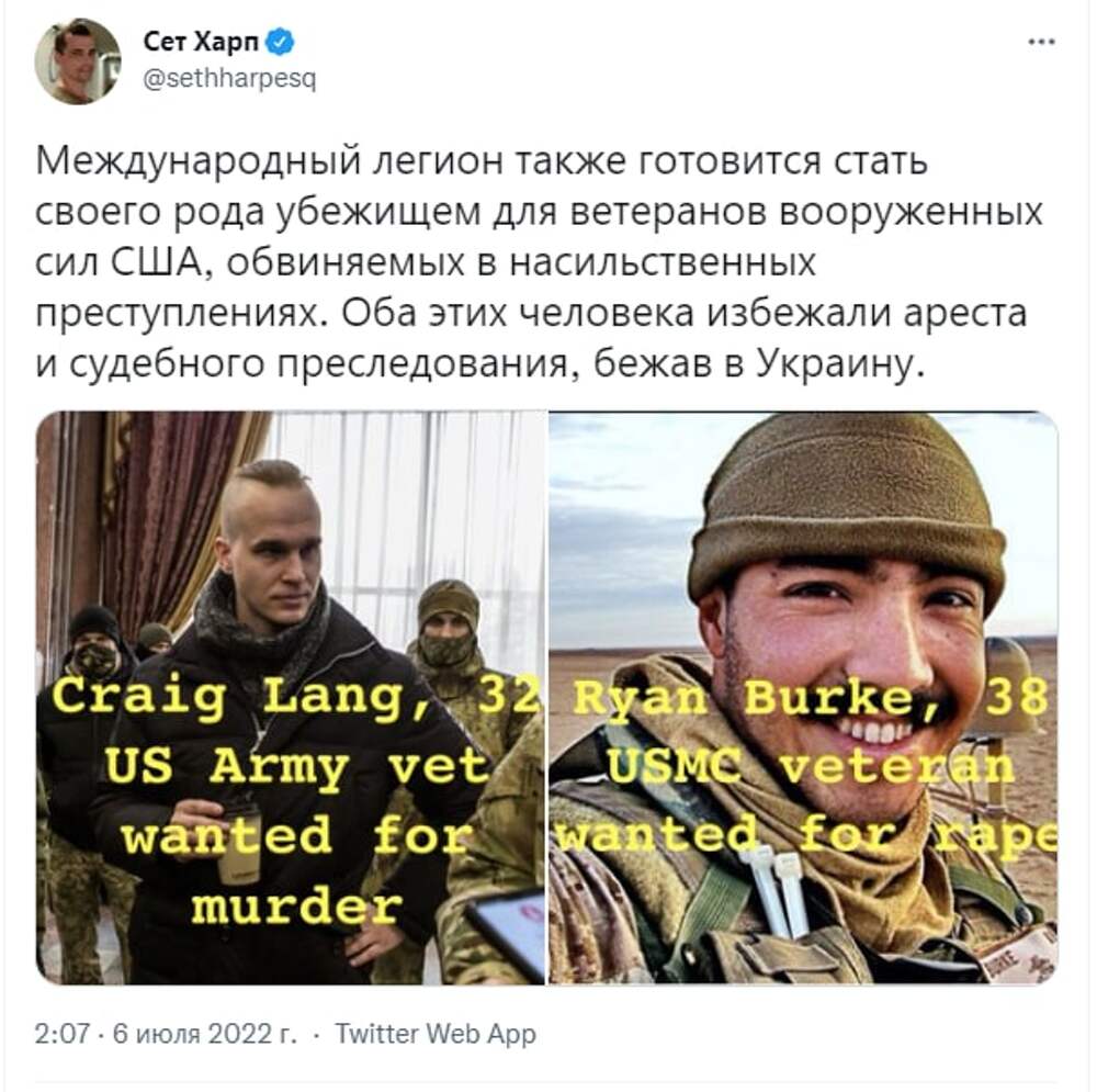 🔻Крейг Ланг - ветеран армии США, разыскивается за убийстве; 🔻 Раян Бурк - бывший морпех, разыскивается за изнасилование. Оба американских преступника бежали от ареста и правосудия на Украину.... Далее